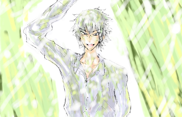 えちゃで描いた産物たち2 ざんとすくのみ なんかボスの夢に出て来るスクアーロみたいな。 「こっちにこいよぉー」「うふふあはは」みたいな(きも 鮫は泣かない。鮫は泣かない。 でも泣いてしまったのは今日がボスの葬式だから。(妄想 イメージとしてはコールドスリーピング